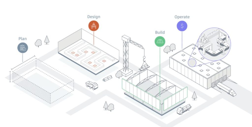 - Connecting data to create an accurate building replica that also includes facility management data —warranties, installation dates, and manufacturer information —to ensure you can continually optimize your factory across its entire lifespan.