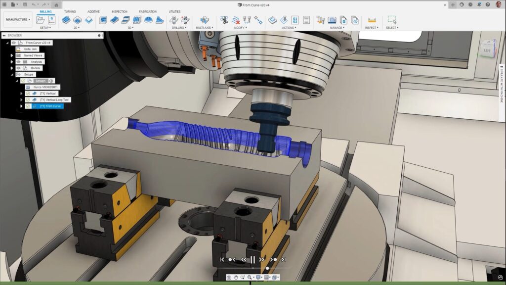 Fusion’s mill-turn environment ensures that complex components—like aerospace housings or robotics shafts—can be programmed and simulated from a single digital model.