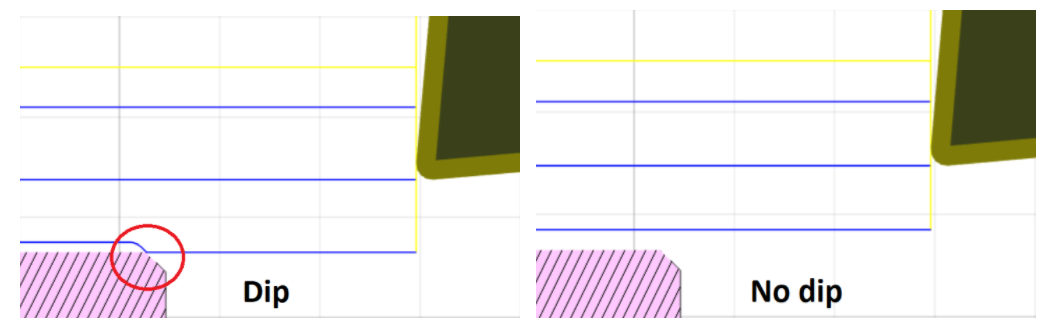 This is now accessible in the Passes tab. When this parameter is checked (current behavior), this retains stock to leave only on the model. However, in certain scenarios this was causing a slight dip in the toolpath as it came off a shoulder on the model. When this parameter is unchecked, stock to leave is now left both on the model as well as the stock, which eliminates this unwanted dip.