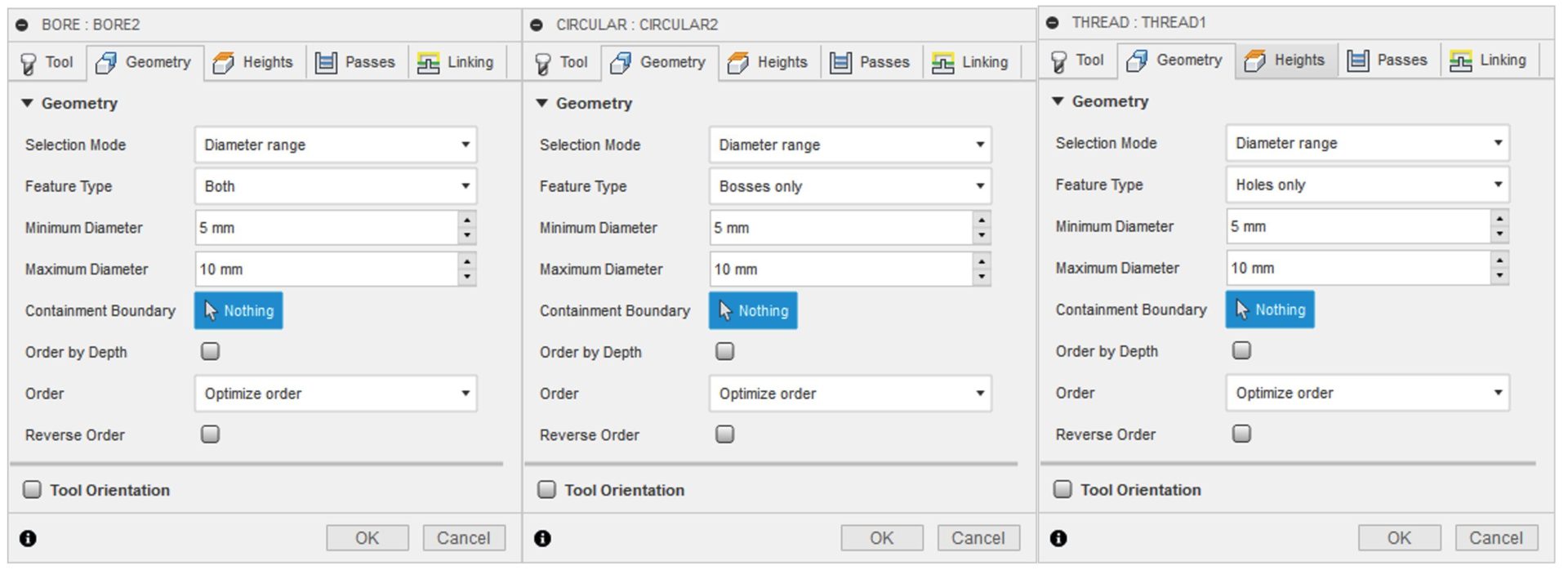 Improved! Diameter range added to Bore / Circular / Thread Geometry selection
