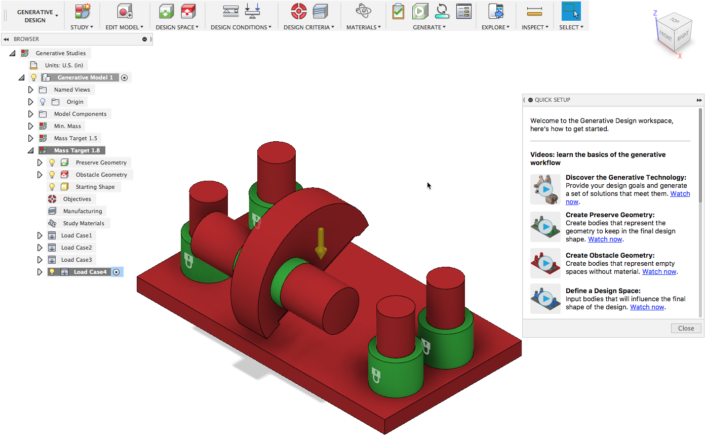 We want to help you get up and running as fast as possible, so we had added a new getting started videos for you to check out. For first time users, you will see this as soon you open the workspace. For our Generative Design veterans, you can easily access this great content from the Help Menu by selecting Quick Start.