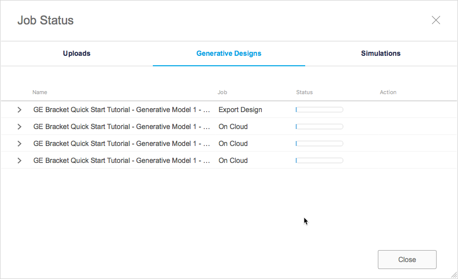 - Fixed the issue where only one export job per Generative Design study was shown in the Job Status dialog, even if you had multiple export jobs running.