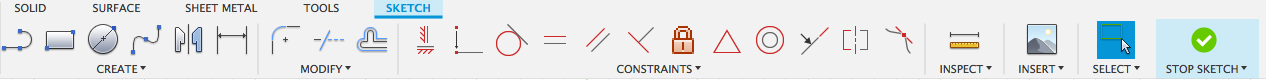 Previously when you started a Sketch in the UI preview, the entire toolbar was highlighted blue, letting you know that the Sketching was a contextual mode within the Design workspace. If you decided to toggle back to the solid tab with the sketch tab still active, there wasn’t a clear indication of whether the sketch tab was contextual or not. It also looked like the entire toolbar was selected, as if you did a “select all”. Now when you start a sketch, the Sketch tab is highlighted, instead of the whole Sketch toolbar.