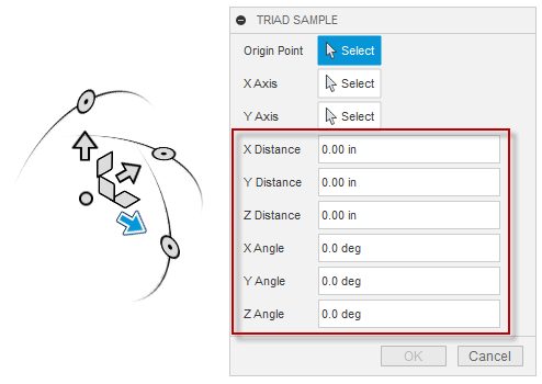 There is now support for a new command input that provides a triad manipulator to allow the user to either graphically or numerically specify moves, rotations, and scales. This is the same command input used by commands like Move, Insert SVG, and Edit Form.