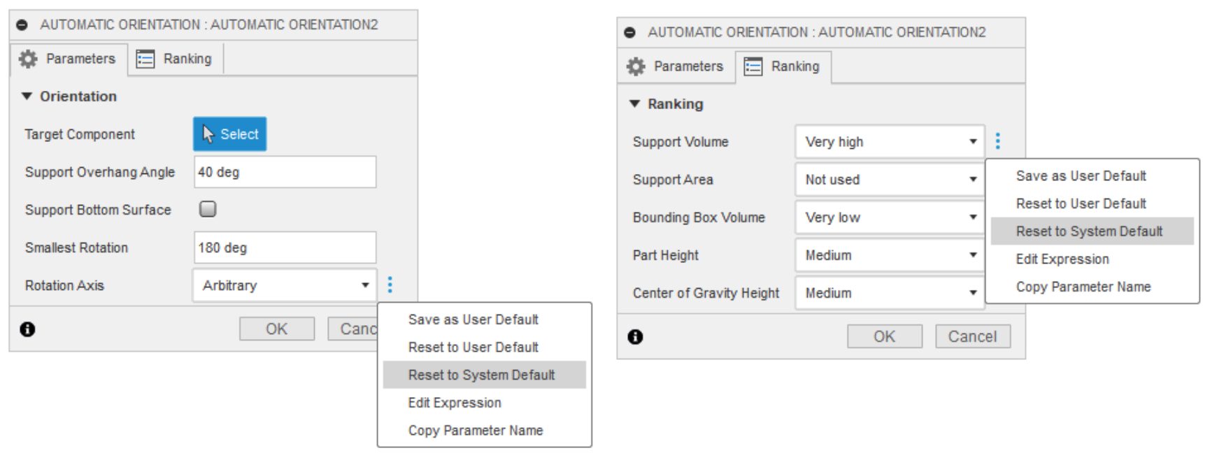 We also modified the System defaults for the Automatic orientation dialog, so that the top ranked orientation outcomes you get after running an orientation study is the desired outcome for printing parts with an FFF printer. This change to the system defaults eliminated the need for a duplicate template to exist in the template library so we removed the “Automatic Orientation -FFF” template from the installer.