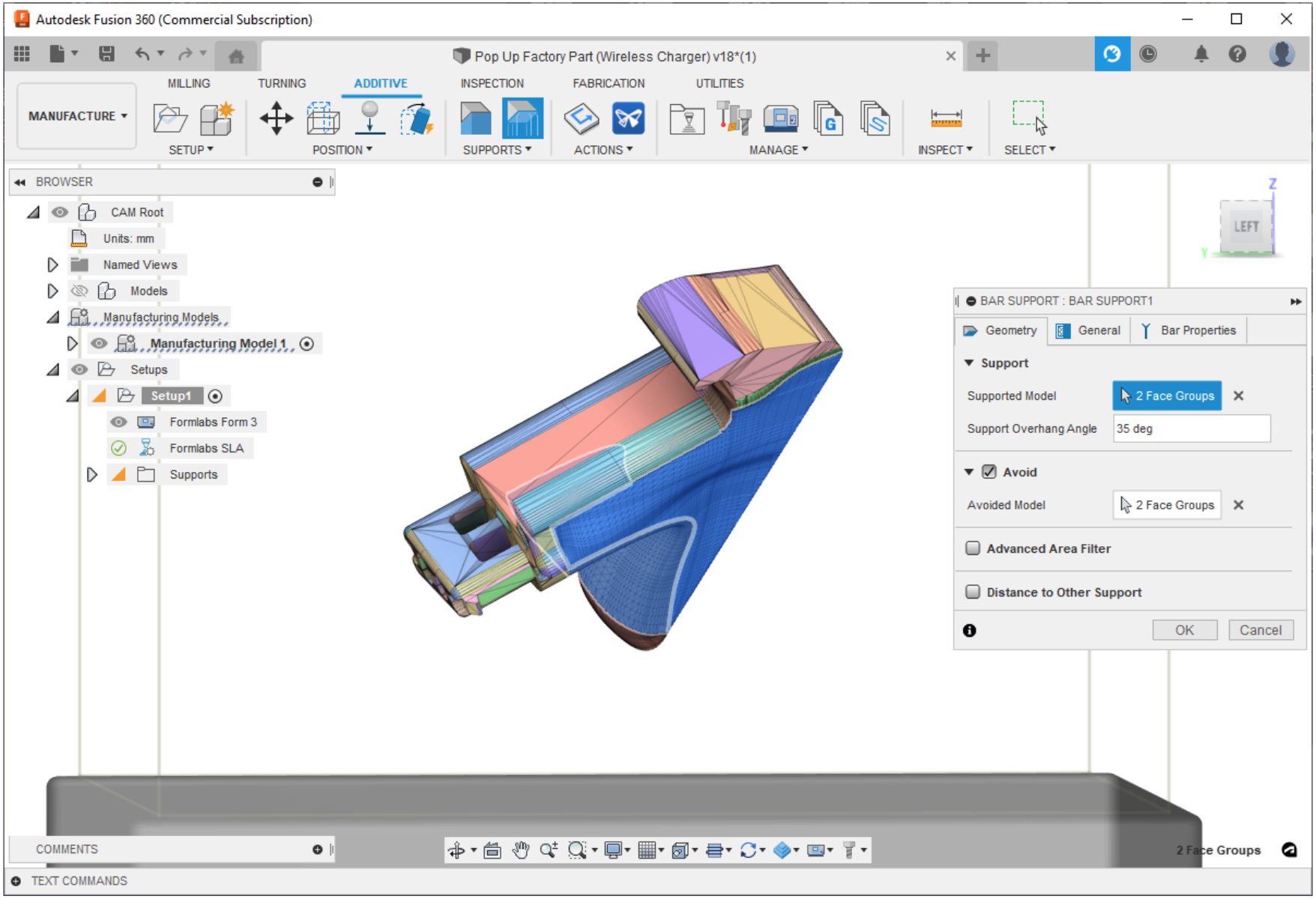 Speaking of selecting objects to create supports, this product update also extends the type of objects you can select when creating support structures. In addition to selecting bodies and faces, you can now select Mesh face groups to Support and/ or avoid while creating Support structures.