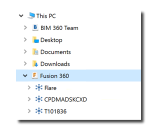 A specific connected drive is created for each data source associated with your Autodesk credentials. You’ll notice for any Fusion 360 data, an associated “folder” is connected on your drive marked with an icon
