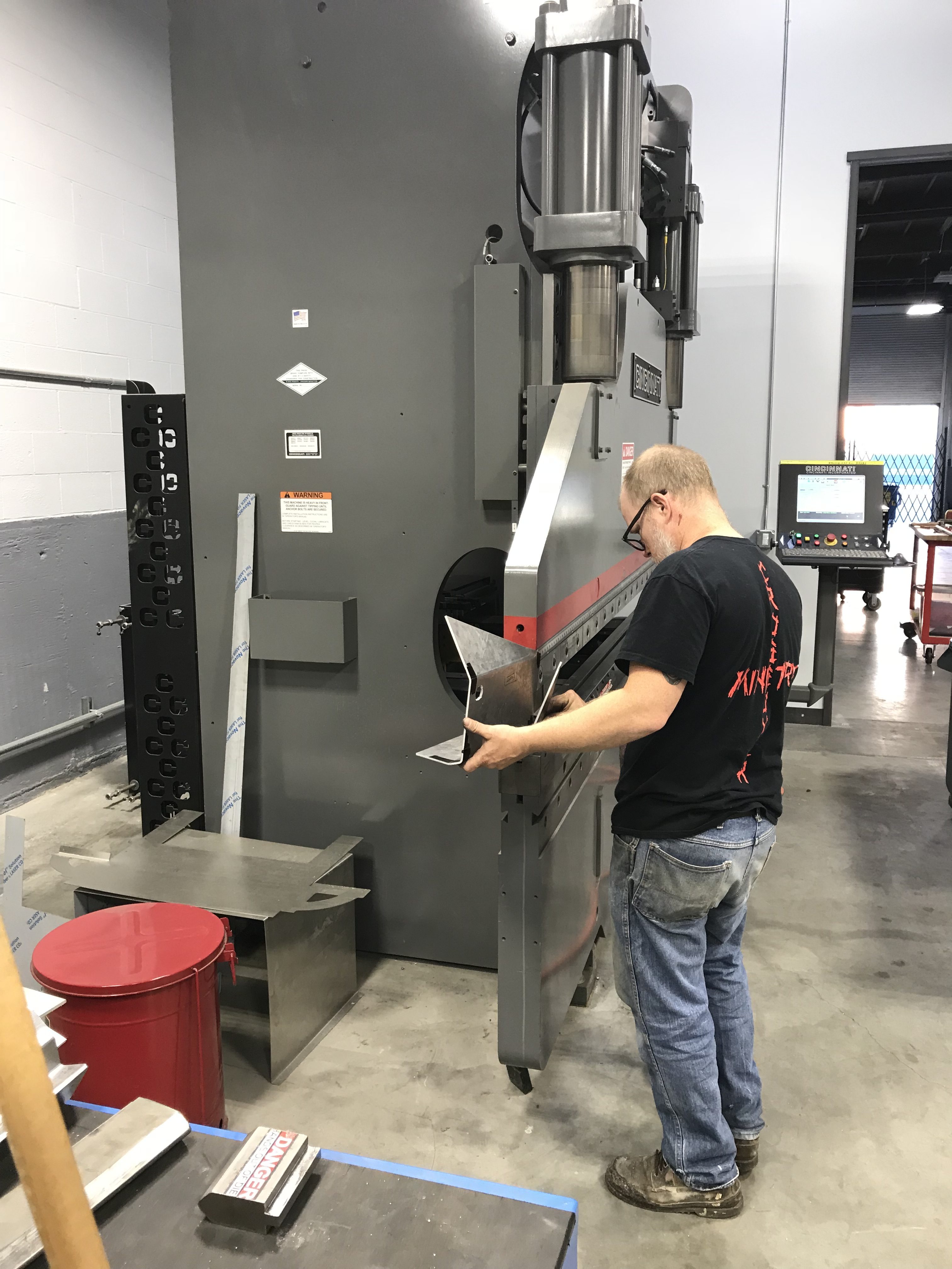 - Once the design was set for how it would be assembled, we wanted to make sure all the pieces could be made with the equipment available. Changes were made to the design to accommodate the dies we had for the press brake, which meant a change in the bend radius. Since this would be a one off, we did not want to make a custom fixture, so tabs and notches were added for alignment.