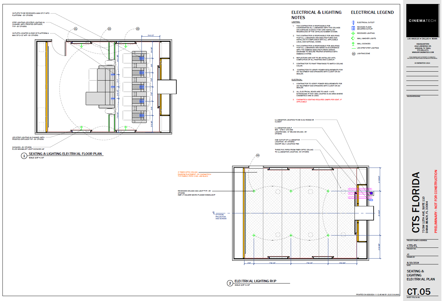CinemaTech relies on AutoCAD to create detailed schematic designs and enhance workflow efficiency with custom tools, dynamic blocks, and automation.