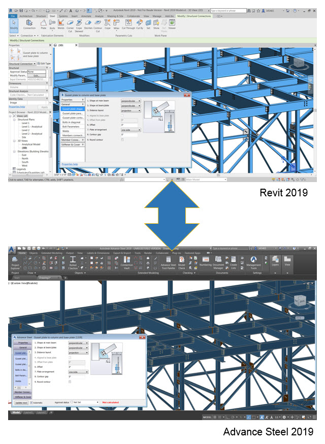 The Advance Steel 2019 Extension for Revit 2019 transfers steel members and steel connections to Advance Steel 2019. Not only are the parametric steel connection being transferred between the two products, but also individual components of custom connections such as plates, bolts, anchors and welds. This enhanced workflow helps steel detailers and fabricators to take better advantage of the steel model designed in Revit. Read more about the Revit 2019 features for steel here.
