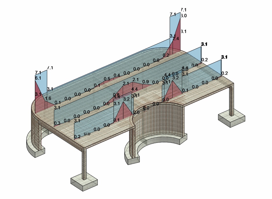 Let’s assume a conceptual model is received from the architect. The structural engineer creates the analytical model and structural system. Revit has multiple tools for defining and editing the analytical model, or the model can be exported to various analysis software that are interoperable with Revit – including Robot Structural Analysis Professional – to perform structural analysis. The results can then be imported into Revit and reviewed to understand the impact of various design changes.