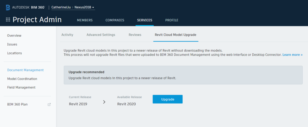 To use cloud models in Revit or Revit LT, you need to be running 2019.2 – available to current subscribers — or later versions and have an entitlement to BIM 360 Document Management.