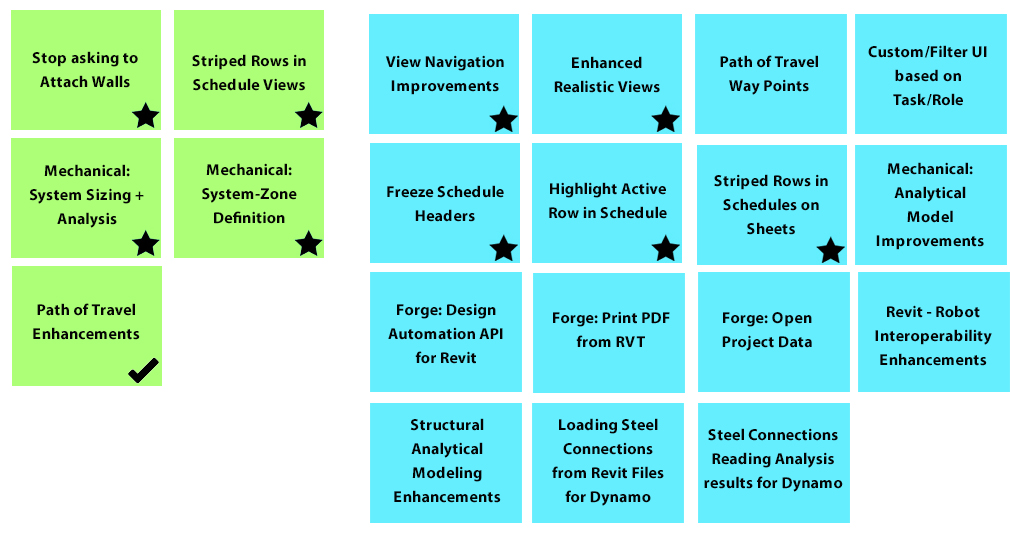 If you don’t see something listed here, it doesn’t mean that it isn’t on our radar. If you have specific suggestions for ways we can make the product better, we encourage you to submit them to Revit Ideas.