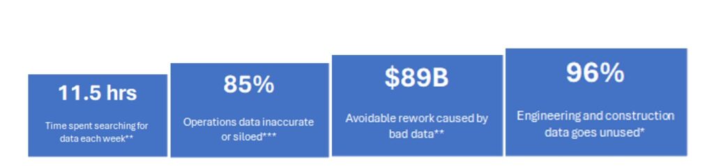 The sheer volume of data produced in our industry is driving enormous excitement and hype around leveraging AI to transform the way our industry works. However, the overwhelming amount of digitized information remains a burden more than a blessing. The potential of that information driving better, more timely decisions remain largely untapped, with an estimated 96% of engineering and construction data remaining unused.*
