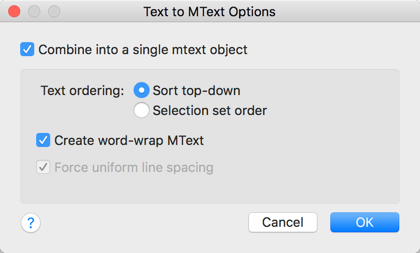 Additionally, with AutoCAD for Mac 2018, you can use the SHX text recognition tool to quickly convert imported PDF geometry to text and Mtext objects. You’ll find that the enhanced Text to Mtext tool enables you to convert a combination of single- and multi- line text objects to one multi-line text object, automatically inferring formatting.