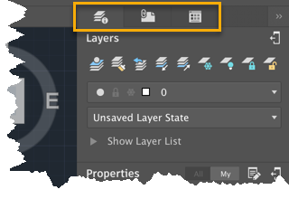 Now, when working with two screens, you can drag the floating palettes to the second screen, optimizing the drawing real estate on the first screen. When using only one screen, you can dock and arrange the active palettes on the right-hand side to optimize screen space and access. These tabbed palettes are contextual and can be activated by command prompt — or just by clicking on them.