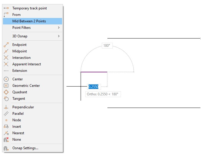 I often need to start a line midway between the endpoints of two other lines. I’ll usually draw a construction line and use the midpoint OSNAP. I do this a lot. Is there a faster way?