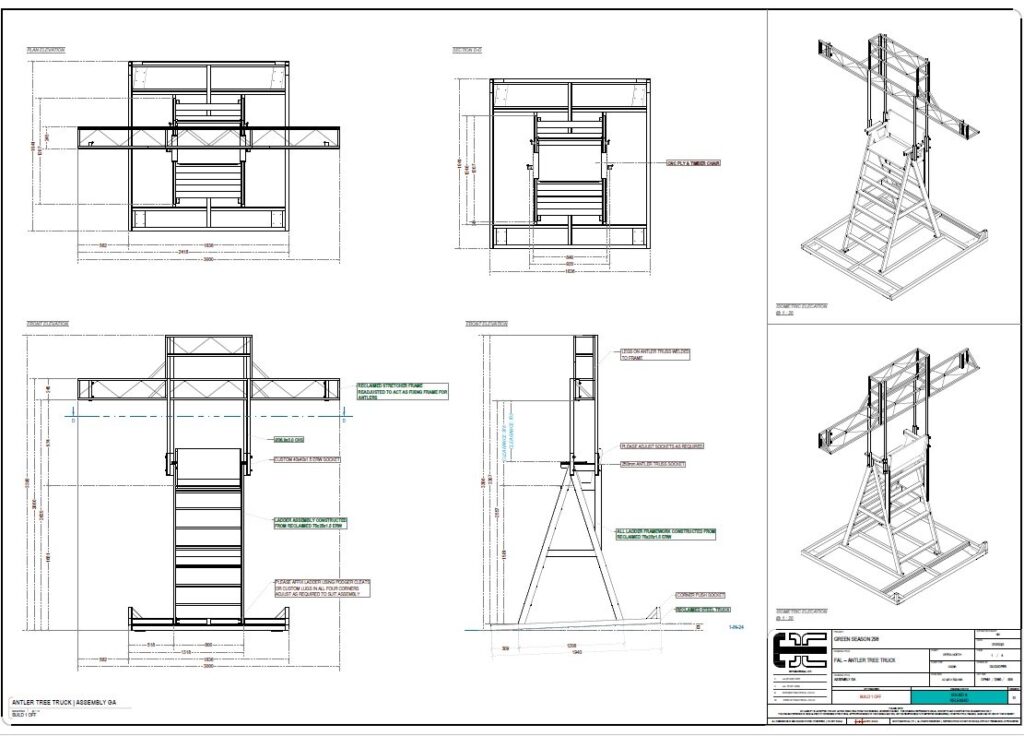 “Working on the ‘Green Season’ for Opera North brought an entirely new way of thinking about fabrication, appreciating reuse, and approaching the drafting process,” Cooper says. “In the end, I delivered 110 drawings for 14 different elements, and it only would have been possible with AutoCAD.”