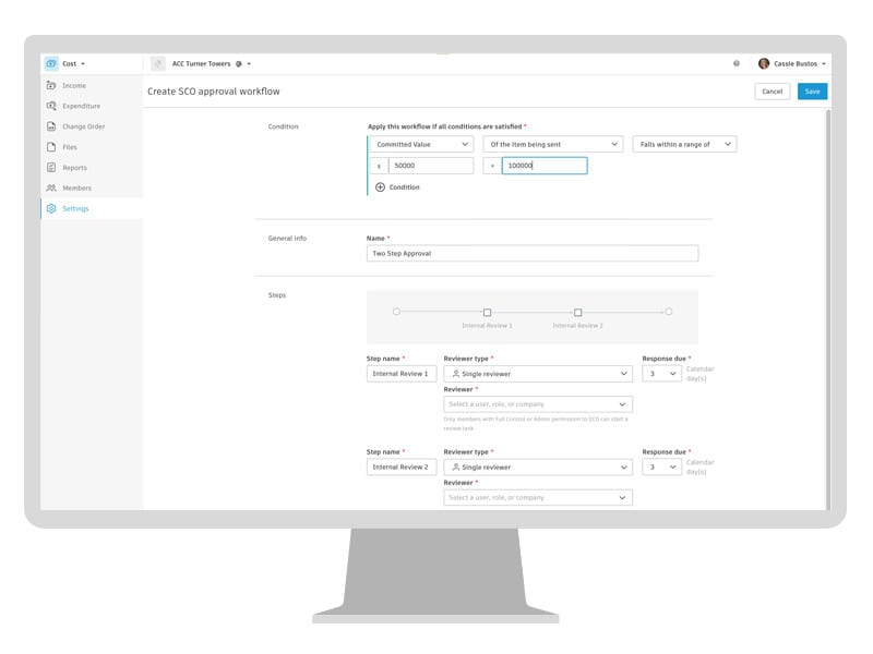 Teams can now create custom approval workflows for Owner Change Orders and Supplier Change Orders. This feature enables automated routing for internal review and approval and allows for consistency and transparency of company-defined processes across projects.
