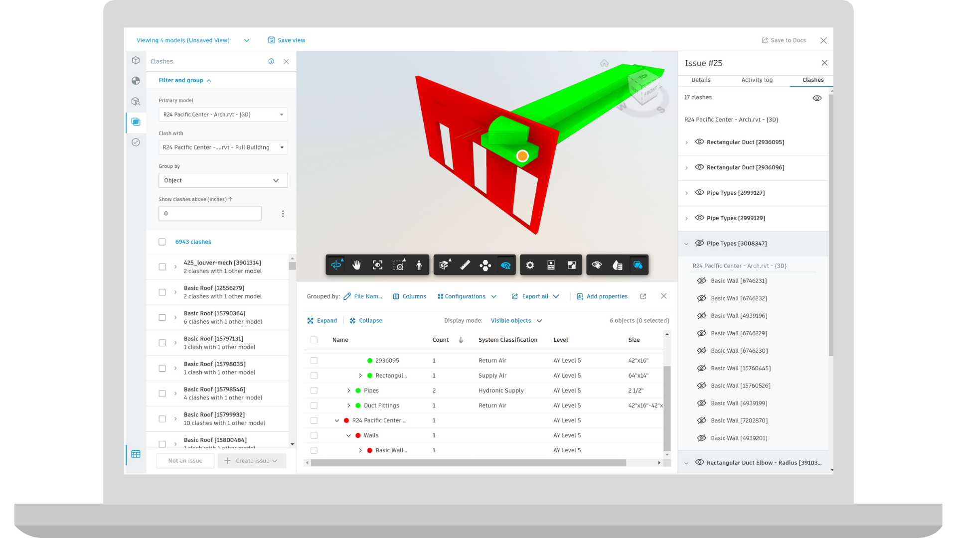 Open the object table while reviewing clashes or issues to isolate important properties associated with model objects. Previously, the object table button was disabled.