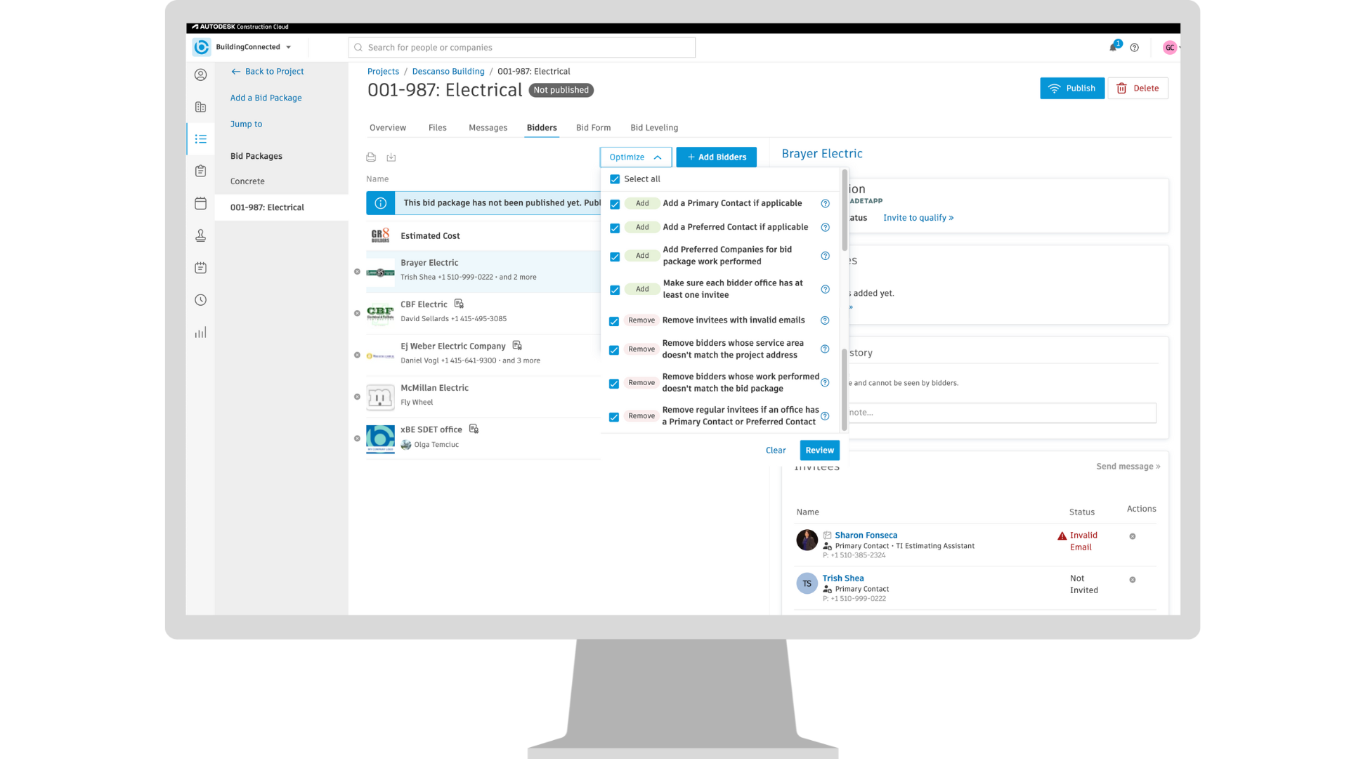 Users now have more control over their bidder lists with better filtering and selection tools. They can remove bidders who don’t work in the project area, don’t offer the trades needed, or already have a primary or preferred contact being invited. They can also add preferred trade partners whose service area matches the project and make sure each invited company has at least one contact. These updates simplify and improve the bidder selection process.
