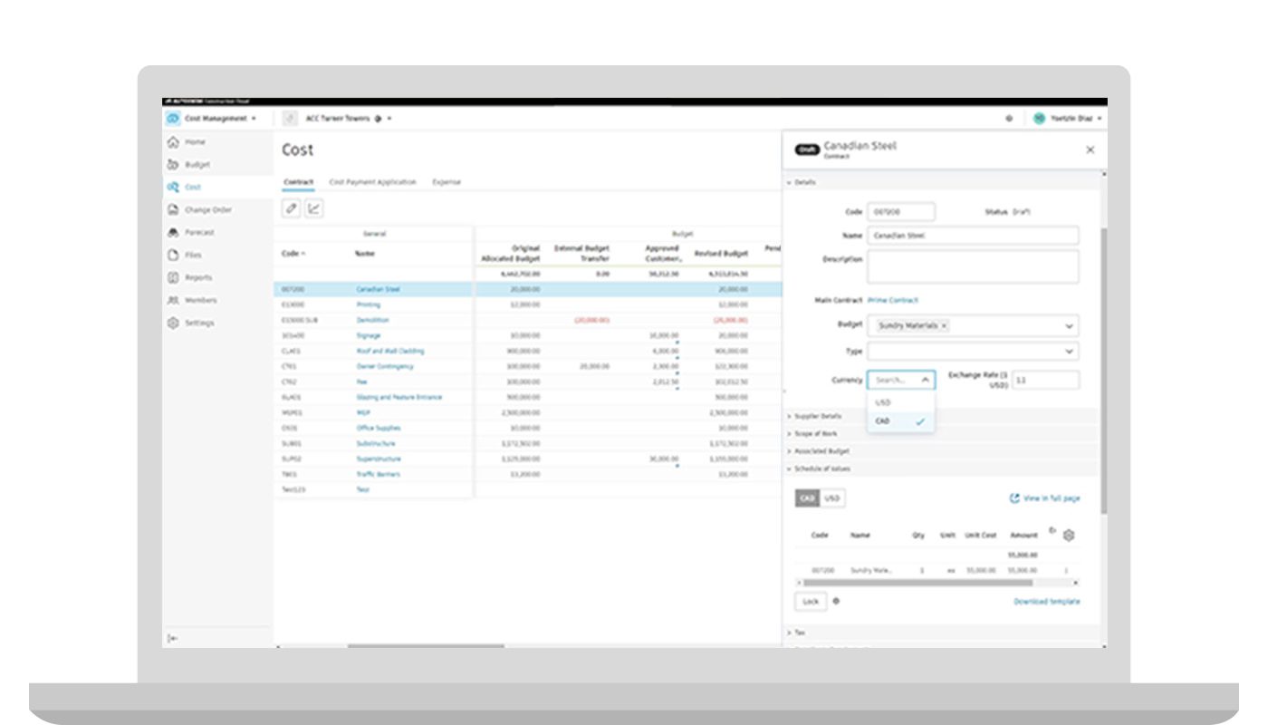 The new Multi-Currency functionality in cost management will help better support cost control for companies that procure from suppliers or carry out work in foreign countries.