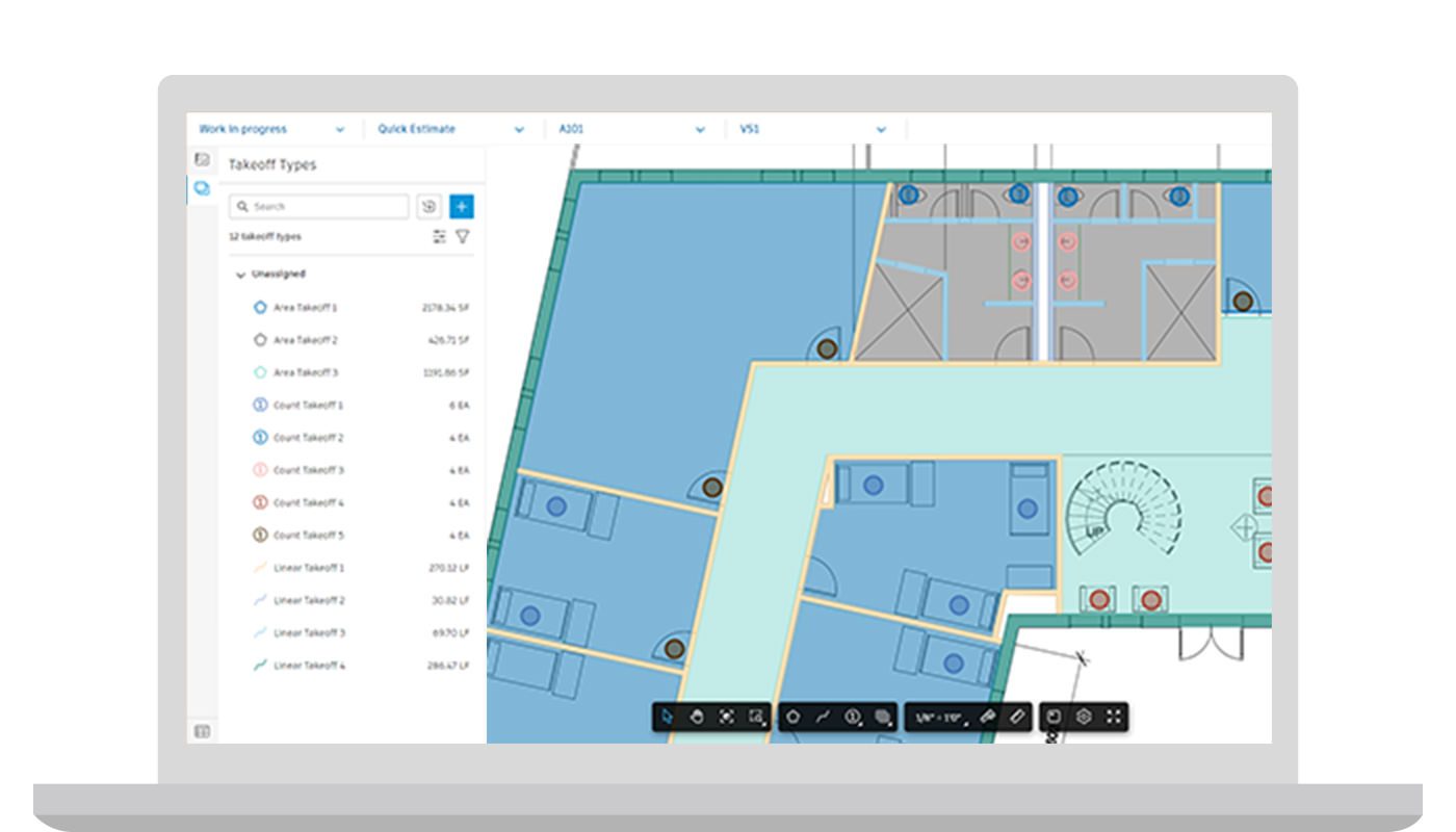 Users can now perform takeoff without first selecting a takeoff type. A new Takeoff type with default settings is automatically created when Takeoff items are placed. This enhancement allows users to quickly get started with Takeoff without the need to fill in all the details. The information can still be edited later to add in additional details such as classification systems and additional outputs.