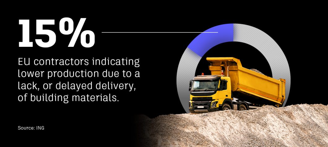 - Fifteen percent of EU contractors indicate lower production due to a lack or delayed delivery of building materials. [ING]