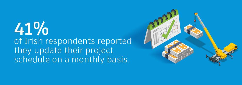 One area where contractors and project owners in the UK and Ireland say they are less than efficient is the project schedule. The study found that respondents in both the UK and Ireland updated their project programmes at around the same frequency. 41% of respondents in Ireland stated that this is something they do monthly compared to 36% of respondents in the UK. Irish respondents were less likely to update the programme every day or every week, tending to leave it longer between updates. Perhaps as a result, they are also significantly more likely to take longer to update a project programme after becoming aware of a situation that demands they update it. For improved performance on projects and better collaboration, more frequent updates make for better project performance so taking the time is worthwhile.