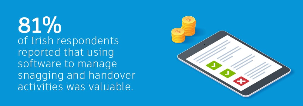 Irish respondents were especially likely to say that using software to manage snagging and handover activities was valuable, with 81% using software in this way and 90% of that group saying it is valuable or very valuable to do so. 66% of respondents in the UK saw continuous snagging as valuable meaning there’s a bigger disparity between the UK and Ireland in their approach to snagging.