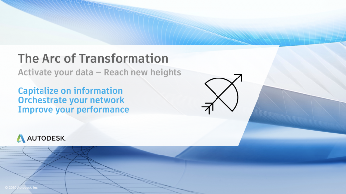 At Autodesk, we have a program called the Arc of Transformation, which helps firms be more intentional about their digital transformation. We want our clients to explore all the possibilities (performance, innovation, transformation) in order to make better decisions about their future. The program guides AEC companies throughout the changes they need to make to ensure the resiliency their business. We help them formulate and develop their strategic initiatives, and we create the conditions for their strategy to better executed.