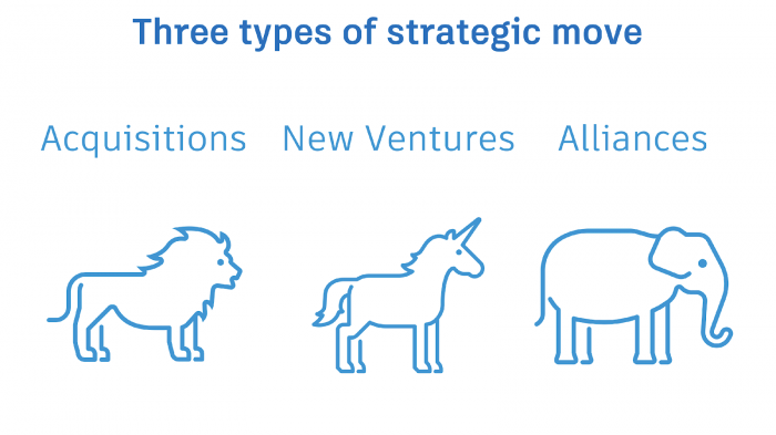 We've identified three strategic moves to enable this, and they are: acquisition, new ventures, and alliances. Each one reflects a growth strategy and a type of business model diversification.
