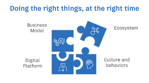 To build resiliency and future proof businesses, what is essential is a sharp and well-balanced execution: “doing the right thing, at the right time”: build the right digital platform, expand your portfolio of business models, build the right ecosystem, nurture the right culture and behaviors.