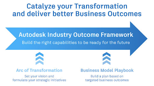 Autodesk works with a wide variety of companies across many industries and markets. While every company is unique, we see many common goals. Decades of experience have helped us understand which technology & capabilities can have the biggest impact. In this new era of convergence, the Autodesk Industry Outcome Framework helps you measure your current capabilities, define better workflows and capture more value. This scalable method guides you on how to set the right priorities, establish a solid program and quickly achieve clear business outcomes. To put it another way, we help you find a recipe — a repeatable sequence — for success.