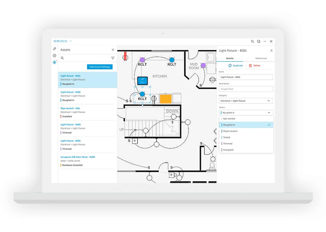 The new progress tracking features within the Assets tool in Autodesk Build deliver a simple intuitive way to visually markup and track asset progress on 2D sheets. This keeps the office team aware of project progress and empowers field teams with productivity forecast to adjust or make improvements. It also helps to ensure that different trades and teams understand what’s ready now, what’s next, and what’s falling behind.