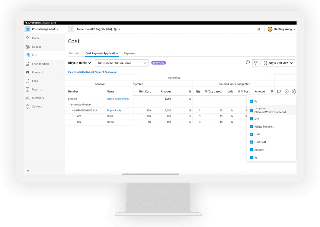 (For Customers that utilize capped retention, claimed and certified amount-based processes for payment applications) Within Cost Payment Applications, teams can now turn on a new column group to track claimed work completed, then shown alongside the certified/approved amounts and line-by-line comments to describe reasons for variances. Document templates are updated to pull this within generated documentation.
