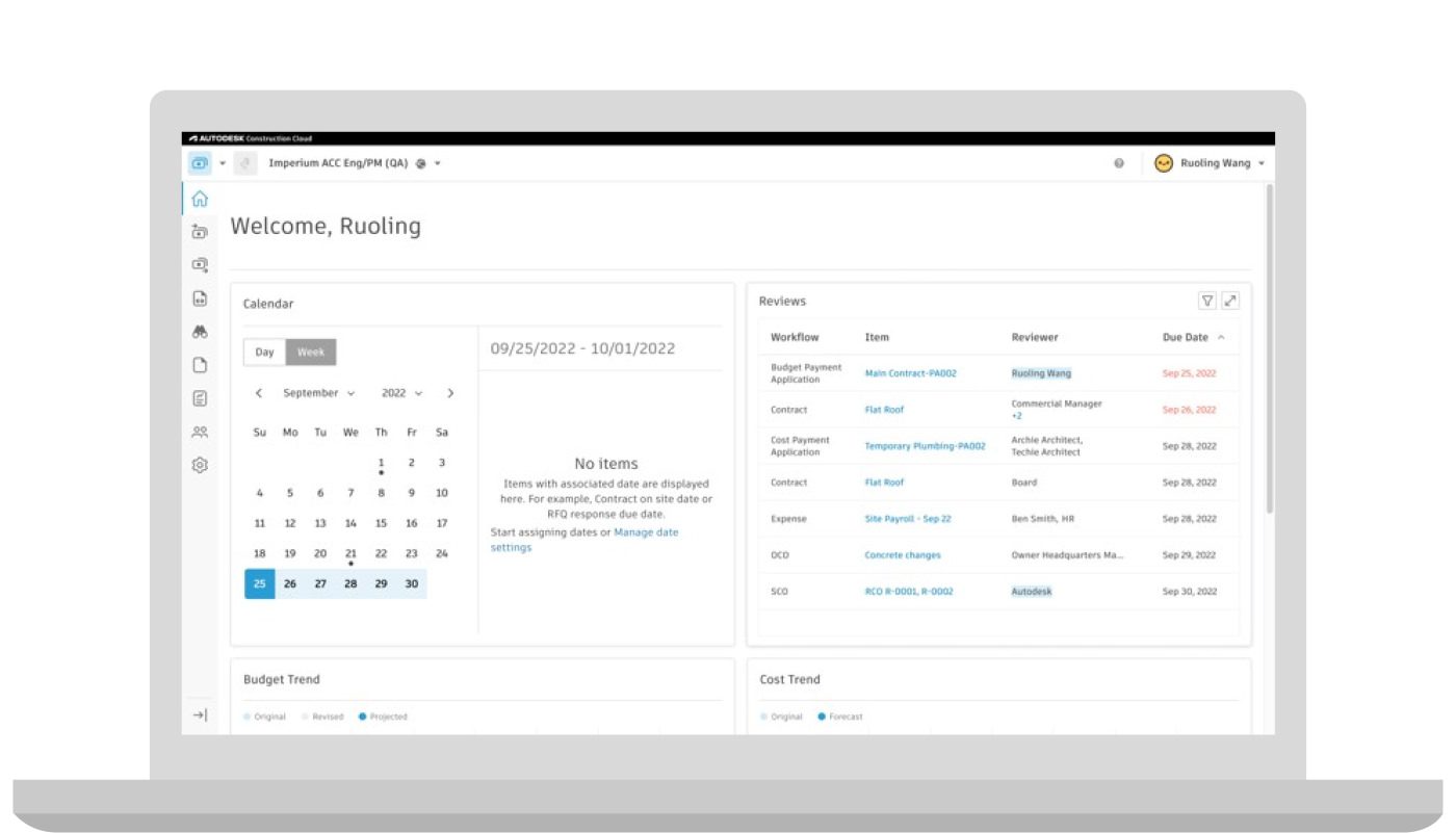 Dashboards | My Home – Now on the Autodesk Construction Cloud main webpage, all members now have access to a personalized user-centric dashboard that provides cross-project view with actionable insights. Members can customize their dashboard to include Assigned to Me, Recent Items, My Projects, Bookmarks, and approved Partner cards. Read more here!