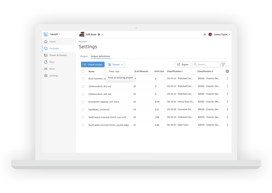 Takeoff | Import Output Definitions From Another Project– Autodesk Takeoff users can now import output definitions from another project, similar to how you can import takeoff types from another project.