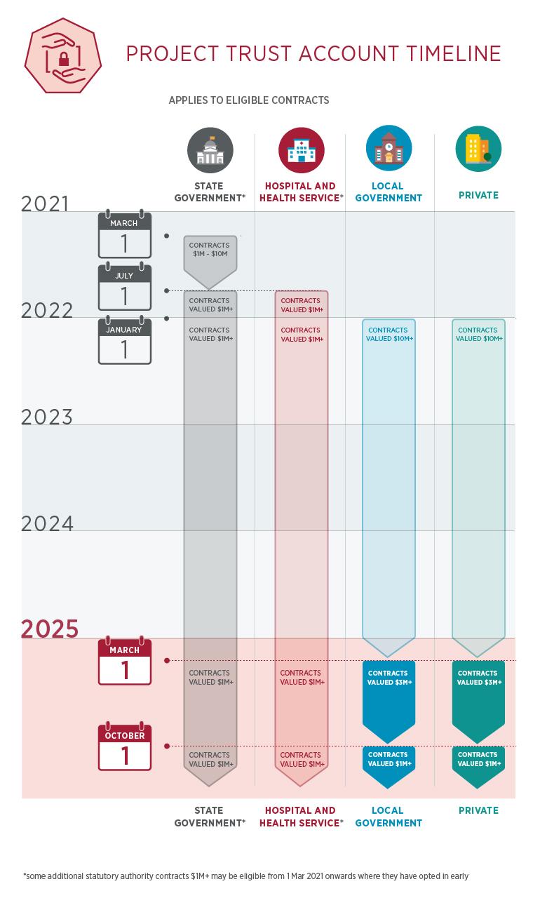 Delivered over five major phases, the trust account framework will progressively expand over time to capture more eligible contracts and contractors.
