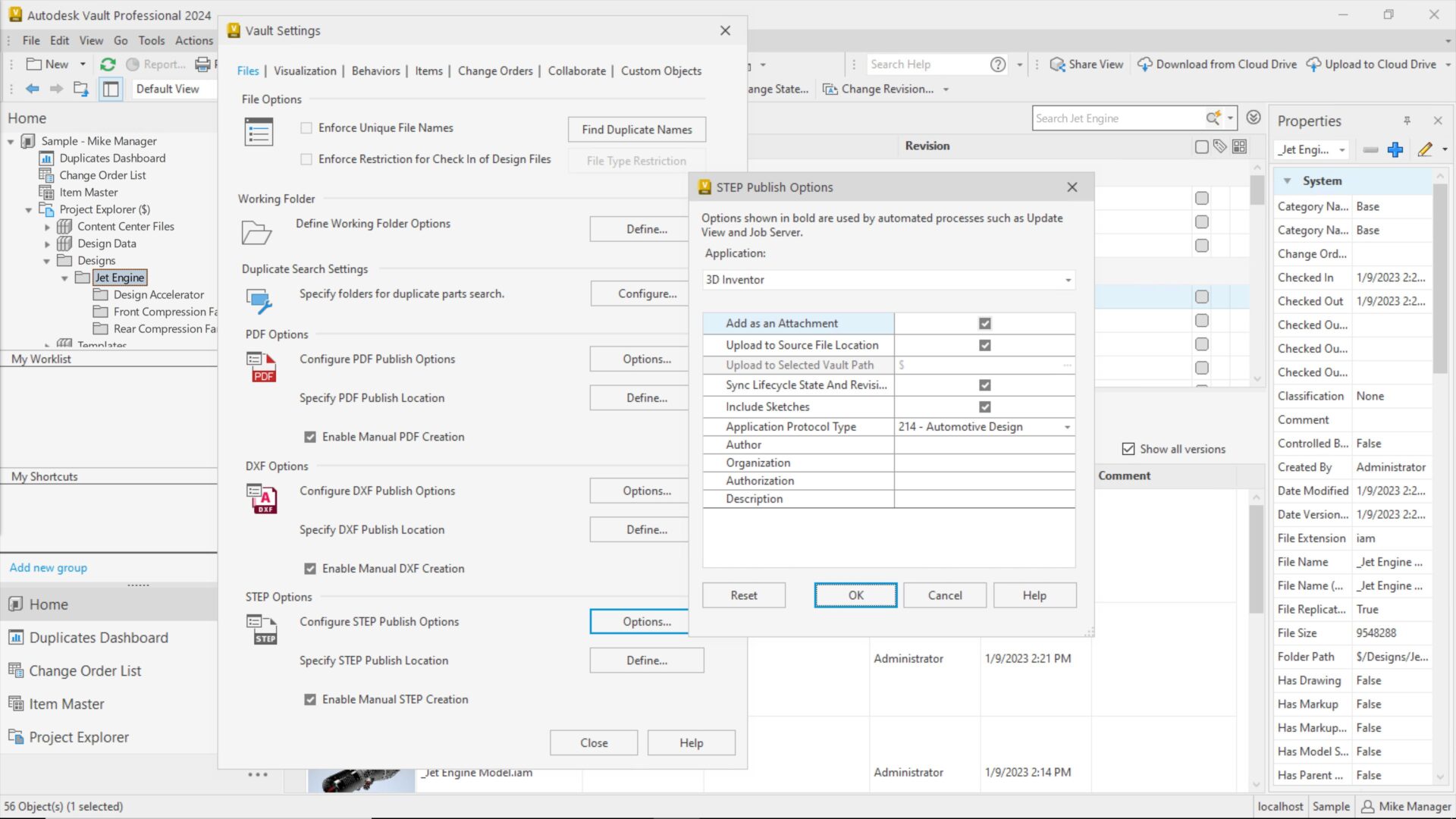 Like automatic PDF creation, Vault lets you publish and manage DXF and STEP files. This can be triggered by a lifecycle state or manually through the toolbar and context menu. The files can then be stored inside Vault or externally in a designated shared folder that mimics the Vault folder structure. This allows you to export DXF and STEP files for manufacturing, suppliers, and subcontractors and greatly improves the design release process so teams can focus more on the work that matters most.