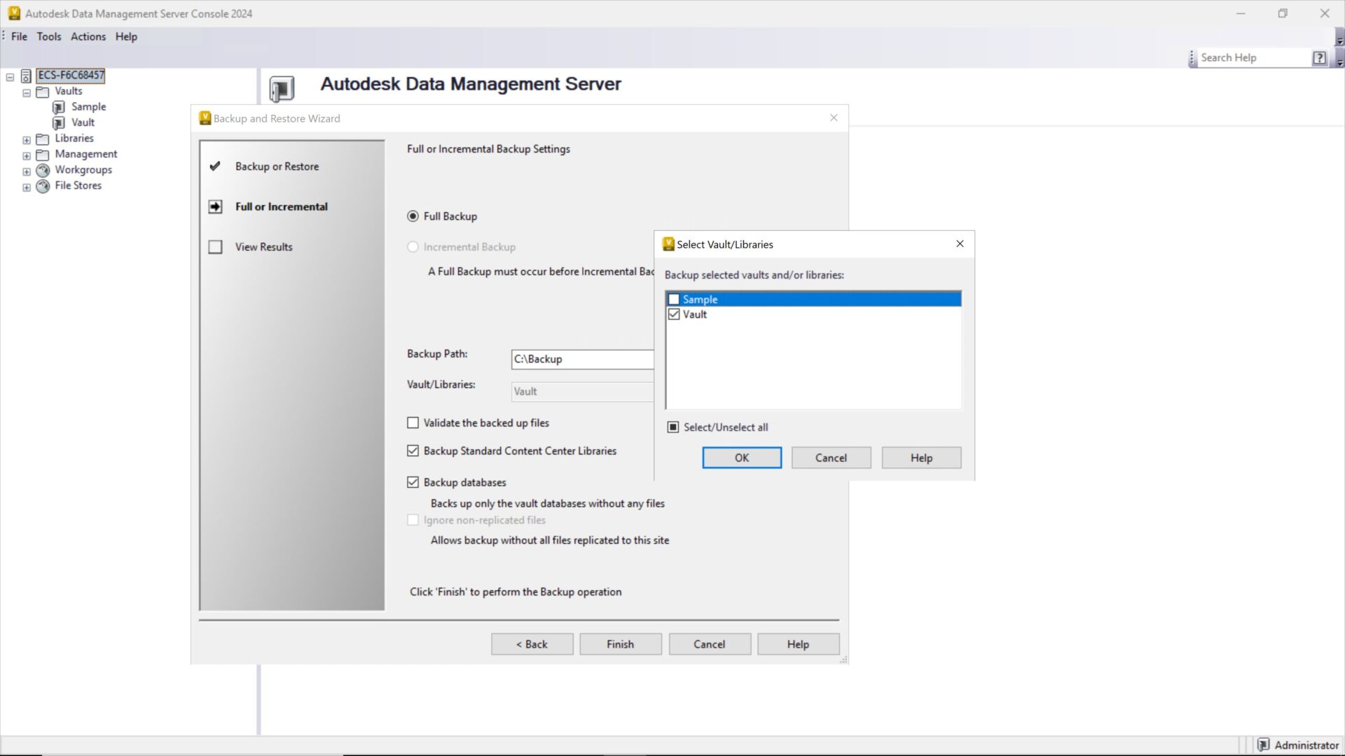 Now you can selectively back up vault and library databases to reduce the time and space required for the backup process. To start, you can choose to only backup databases without any files. You can also choose which vault and libraries you want to be backed up. You can use an existing file store location during the restore operation. There is also an option to exclude the file store validation during a restore. As a result, the restore operation will be completed faster, and the file store validation can be executed later.