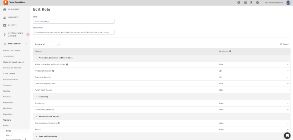 Customizable user roles help ensure the right people have the right access—supporting more secure, accurate, and efficient manufacturing operations.