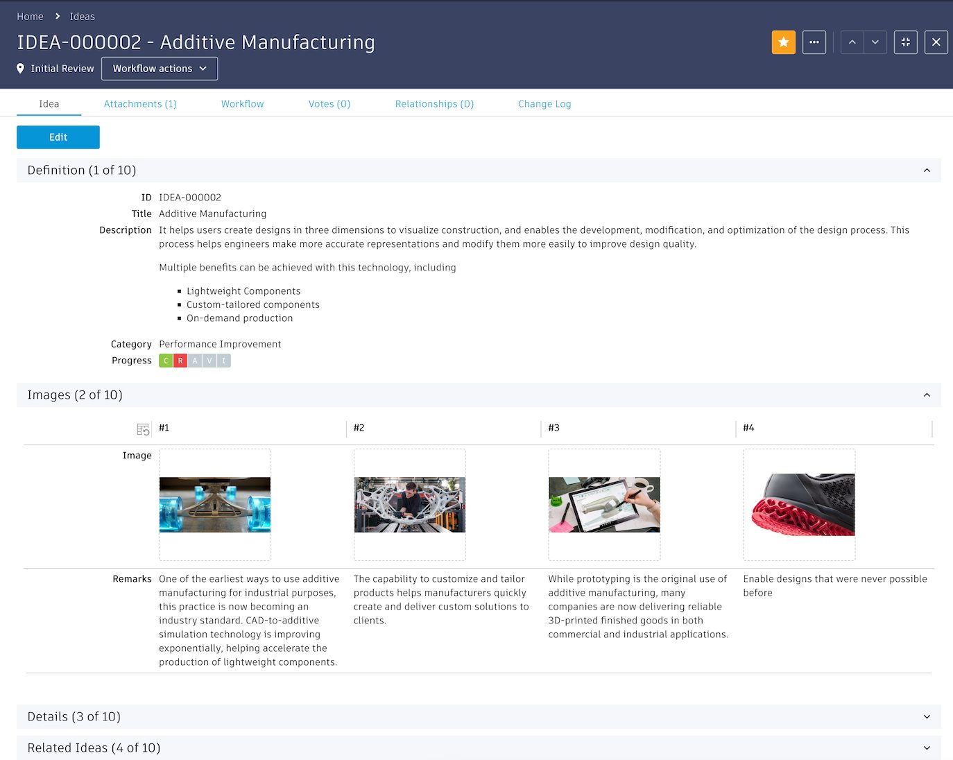 The Ideas Management template in Autodesk Fusion Manage aims to create an open and safe environment for employees to share their thoughts, whether it’s a bug fix, a new service, or a performance improvement. The template emphasizes the importance of inclusivity, encouraging all team members to contribute their insights without fear of judgment. Beyond just capturing the basic idea, it allows users to enhance their submissions with critical information such as expected improvements, proposed actions, and known risks. This additional context not only facilitates a more thorough analysis but also ensures that you consider all necessary details during the evaluation process.