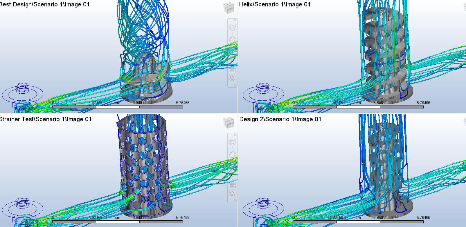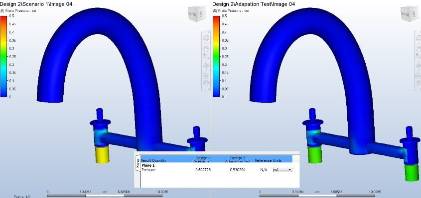 Let’s take this example below. (Use your imagination here). I’m working on designing a new mixer insert for my faucet. I have an existing design, and I want to look to optimize the temperature distribution at the outlet while minimizing the pressure drop. I’m going to start by looking at the existing design: