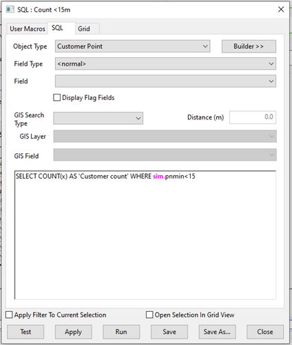 For each test case, the summary report will list the number of customers affected by low pressure returned by the ‘Count < 15m’ query.
