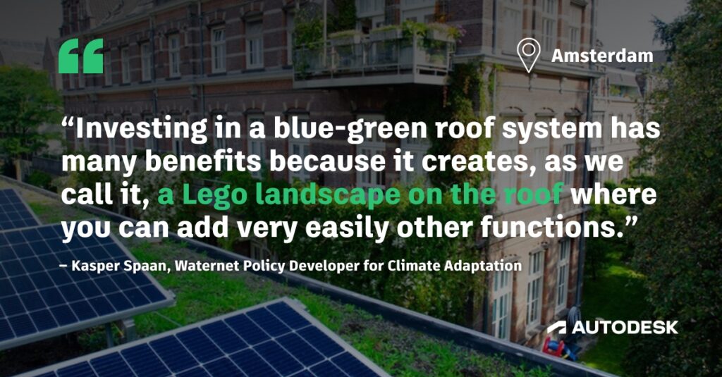“It’s essential to work within the investment cycles we see in the city from other sectors like solar or insulation, maintenance, or renovation of buildings. If you work contrary to that rhythm, it’ll be too expensive,” he says. “Bringing multifunctionality to a roof can help with multiple financial streams that, when combined, can deliver a cheaper and more robust solution.”