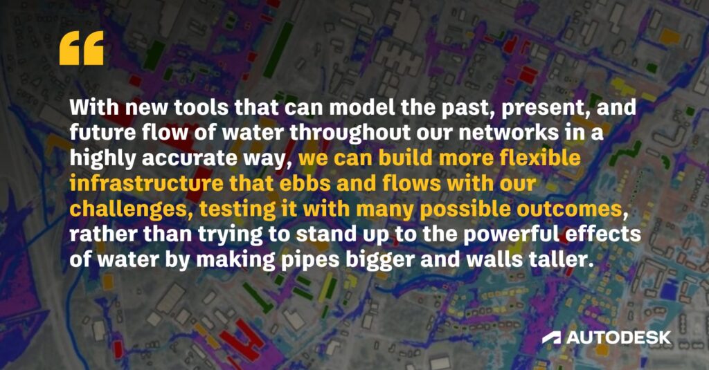 The industry agrees that digital transformation is how water professionals will be able to overcome our challenges, but we must ensure that we’re ready to embrace the core technologies necessary to walk the path. That’s what we’ve built and are continuing to innovate on here at Autodesk: a comprehensive suite of water software that meets you where you are, helps you ingest data, simulate comprehensively based upon that data, and democratize access to that data using technologies like the cloud. Solutions that make walking that path easier and more straightforward. Better yet, thanks to our continuing work and innovation in AI, the ability to create insights and learnings based upon that data is only increasing as well.