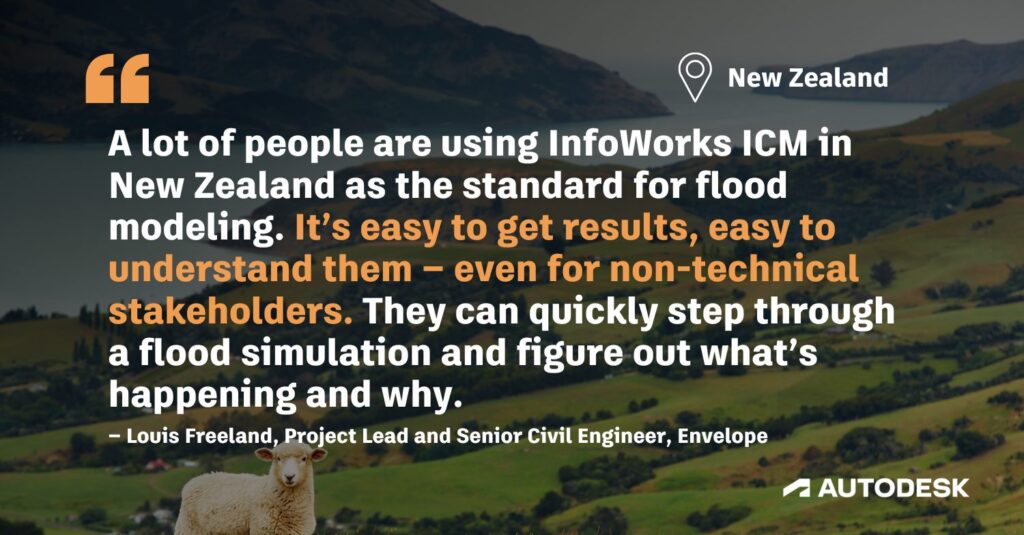 Envelope’s use of InfoWorks ICM for flood modeling was essential in addressing these challenges. The software’s user-friendly interface and powerful capabilities allowed the team to quickly step through flood simulations and understand the impacts. Freeland gave high marks to InfoWorks ICM, noting, “A lot of people are using InfoWorks ICM in New Zealand as the standard for flood modeling. It’s easy to get results, easy to understand them – even for non-technical stakeholders. They can quickly step through a flood simulation and figure out what’s happening and why.”