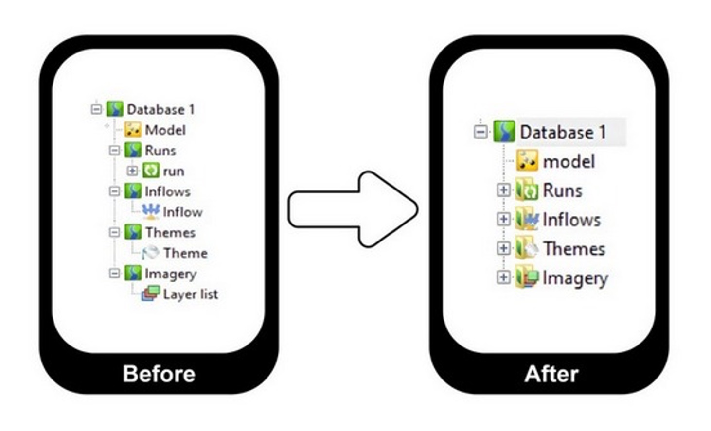 When a Model Group contains only one type of object (eg, rainfall files, layer lists), its icon automatically changes to reflect that object type. This should create a more consistent experience across all database types and improve navigation clarity in cloud-based projects.