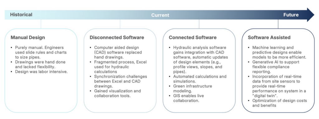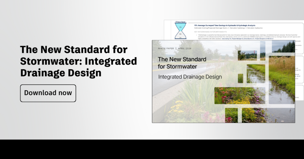 Engineers often move between CAD platforms, hydrologic and hydraulic modeling tools, and spreadsheets, too often rebuilding the same design multiple times across systems. As the white paper explains, this creates a labor-intensive cycle of manually transferring data, where every iteration introduces new opportunities for delay or error.
